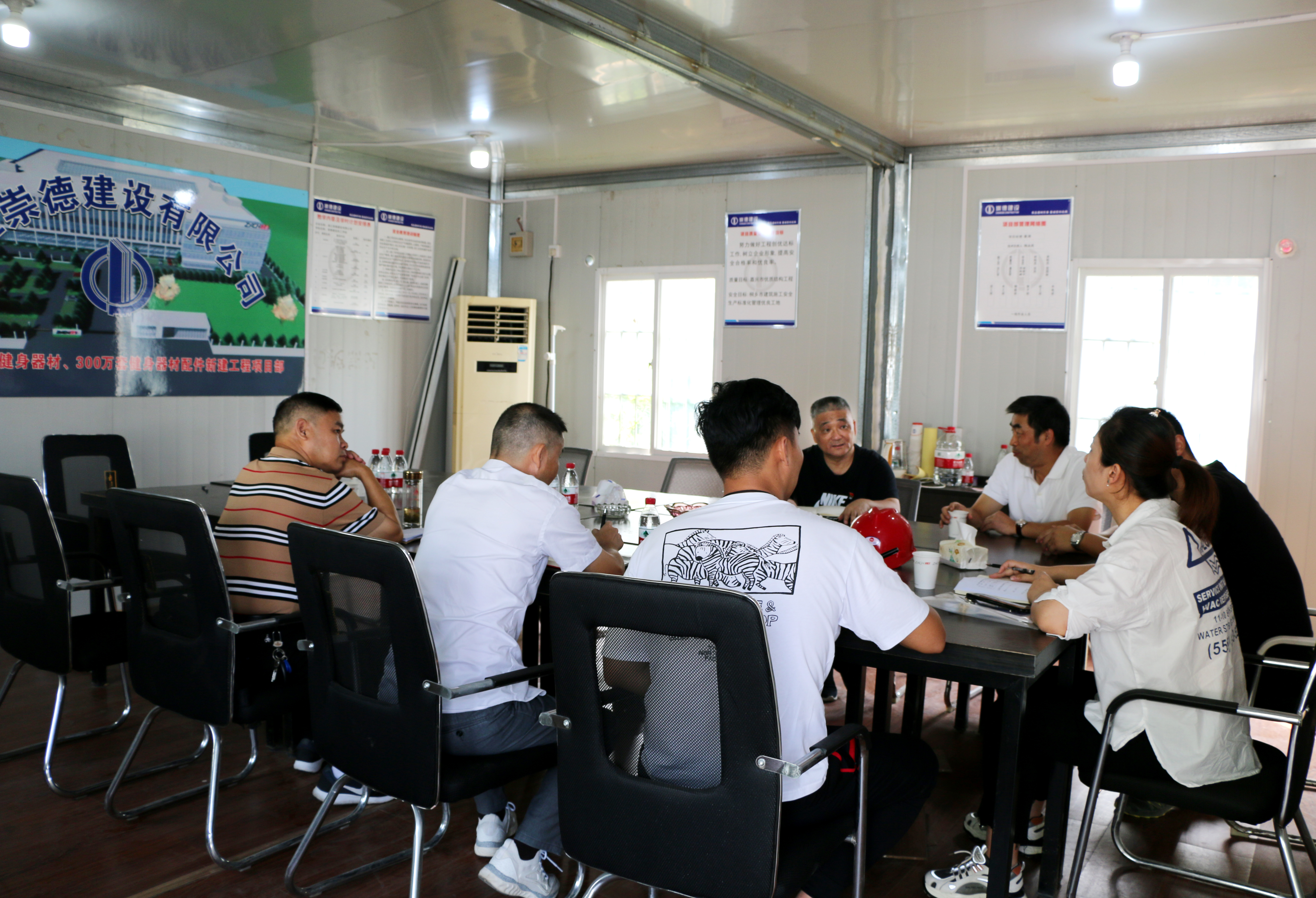 2021年以來,浙江崇德建設有限公司通過“生產結合支部”、“黨建促基建、基建強黨建”,深入開展以“六有一好”為主要內容的建筑行業“紅色工地”建設活動。正星(桐鄉)健康科技有限公司1 # 車間、輔助用房(年產2 5 萬臺健身器材、3 0 0 萬套健身器材配件新建項目)通過制定實施方案,成立領導小組,明確工作職責,強化舉措落實;設立臨時黨組織,委派黨員骨干擔任黨建指導員,全面負責指導、協調紅色工地的黨建工作;制定出臺符合工地實際的黨組織制度;推行紅色驛站、工地公約、工地事務團和工地議事會;營造濃厚氛圍,動員全員參與,做到了有1個黨建指導員、1支黨員隊伍、1個紅色先鋒站,建好1個精品工程。目前,該項目已順利通過了桐鄉標化工地、嘉興市優質結構驗收,真正實現了黨建、生產齊頭并進,黨建與工程建設管理同頻共振,有效提升了“黨建+工程建設”水平。